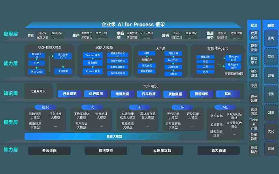 端到端的一站式AI工作空间深度融合了从企业战略规划到日常经营的全流程业务板块,,定向解决车企内部领域多、、、部门多、、链条长、、、、场景碎片化等难题,,,支持车企快速构建以AI为核心的生产力写作体系,,,,实现任务执行与AI能力的无缝集成与交互